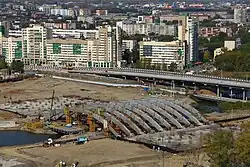 174 | 30 | неизвестно | Здание, строившееся к несостоявшимся саммитам ШОС и БРИКС 2020 года, было заморожено в 2019 году, на настоящий момент идёт переработка концепции здания[73][74]. |