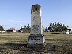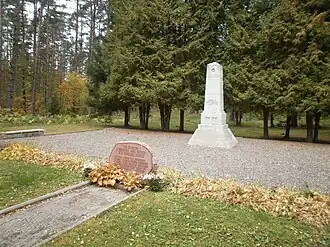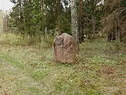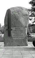 с 1997 до 2024 года[27]. Первоначальный бетонный советский памятник с другой надписью стоял перед зданием волостной управы, где также находится братская могила, современный памятник из валуна с чёрной гранитной плитой расположен к востоку от могилы на газоне и был установлен там в 1990-х годах. | ||