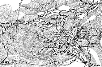 В кавалерийской атаке особенно отличились драгуны Каргопольского и гусары Александрийского, Ахтырского, Белорусского и Мариупольского полков.[4] Одновременно корпус Остен-Сакена ударил в штыки на французов. Проливной дождь вывел из строя ружья, бой велся холодным оружием и артиллерией, в которой значительное преимущество из-за возможности маневрирования имели союзники.