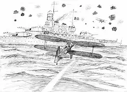 - ↑ See the report in the official Admiralty publication of 1943, East of Malta, West of Suez: The Admiralty Account of the Naval War in the Mediterranean (London, His Majesty's Stationery Office, 1943), where the detection of the Italian force is credited to "one of Formidable's aircraft on reconnaissance." (p. 56)