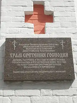 - ↑ Церковь Сретения Господня в Дмитрове. Дата обращения: 30 октября 2018. Архивировано 30 октября 2018 года.