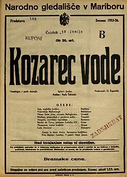Премьера новой пьесы Эжена Скриба состоялась в Французском театре в Париже 17 ноября 1840 года, а в 1841 году немецкий писатель Александр Космар перевел «Стакан воды» на несколько языков, в том числе на немецкий. Один из первых марксистов, писатель Георг Верт называл эту пьесу в числе своих любимых. В Германии Скриб, как автор с большой свободой обращавшийся к политическим темам, пользовался популярностью, а в условиях жёсткой цензуры пьесы, подобные «Стакану воды», проецировались на реалии, современные зрителю[2].