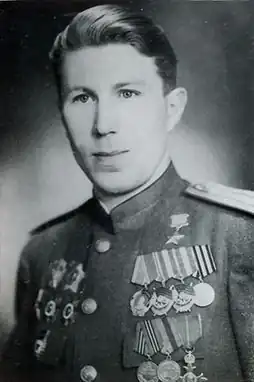 - ↑ Военный совет 5-й воздушной армии. Наградной лист = Представление к награждению орденом Отечественной войны 1 степени // Центральный архив Министерства обороны РФ : Приказ № 6/н от 20.02.1944. — ЦАМО: 7120, 1944. — Т. 33, вып. 690155, № 36399934. — С. 137. Архивировано 12 февраля 2012 года.
