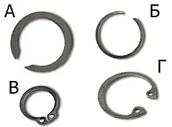 - ↑ ГОСТ 13940-86 Кольца пружинные упорные плоские наружные концентрические и канавки для них. Конструкция и размеры. Разработчик - Государственный комитет СССР по стандартам