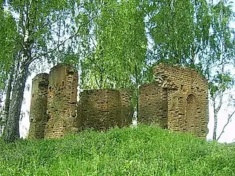 Недалеко от деревни сохранились руины часовни[1].