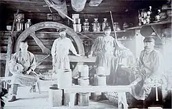 - ↑ «Железо», изготавливавшееся на предприятиях XVIII—XIX веков (до развития сталеплавильных процессов), представляло собой не чистое железо, а его смесь с оксидами руды, несгоревшего угля и включениями шлака. Такая смесь с меньшим (по сравнению с чугуном) содержанием углерода называлась сыродутным, губчатым или кричным железом. Неметаллические включения после выплавки удалялись путём проковки слитков с помощью молотов[8][9].