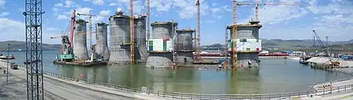 В июне 2005 было завершено строительство 2-х бетонных оснований гравитационного типа по методу скользящей опалубки, на возведение которых ушло 57 тысяч м³ бетона и 27 тысяч тонн арматурной стали, а также 25 тысяч м² металла для изготовления опалубки. Размеры платформ составили 100 на 100 метров. Было задействовано около 2000 российских и зарубежных специалистов и рабочих. Готовые платформы были отбуксированы на сахалинский шельф. Док был затоплен водой, в последующие годы проведена капитальная реконструкция для многоразового использования.
