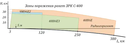 Комплекс может поражать воздушные цели ракетами ЗУР сверхбольшой дальности 40Н6Е на дальности до 380 км, в том числе по целеуказанию с самолета ДРЛО А-50[6]