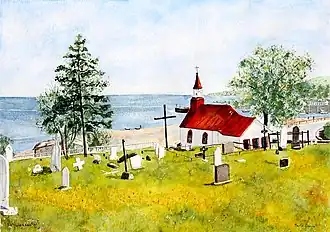 Старая индейская часовня (1747-1750 гг.) И ее кладбище на берегу реки Святого Лаврентия.