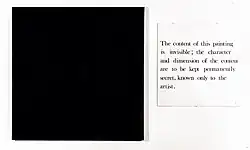 Именно эта серия монохромных картин отличается от монохромных картин, обычно производимых в области пластических искусств, наличием текста, который её сопровождает. Этот текст гласит: «Содержание этой картины невидимо: характер и размер содержания должны постоянно храниться в тайне, известной только художнику» (англ.: «The content of this painting is invisible: the character and dimension of the content are to be kept permanently secret, known only to the artist»)[2]. В то же время, она является отсылкой к истории монохромной живописи и к Чёрному квадрату Малевича (1915), а также ответом Мела Рамсдена на картины Эда Рейнхардта (1913—1967)[3], американского художника и теоретика, предшественника концептуального искусства и минимал-арта.