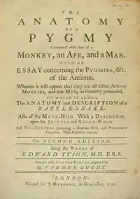 Титульный лист Эдварда Тайсона, «Анатомия пигмея» (2-е издание 1751) В 1680 году Тайсон изучил морских свиней и установил что они млекопитающие. Он отметил, что извилистые структуры мозга были ближе к структурам земных четвероногих, чем к структурам рыб.
