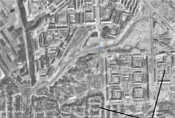 Казань. Улица Танковая, проложенная по дну Танкового оврага, на снимке с американского спутника (5 сентября 1977)