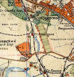- ↑ «План местности в окрестностях церкви Всех Святых во Всехсвятском. 1886 г.» ЦИАМ, ф. 54, оп. 143, д. 15, л. 16