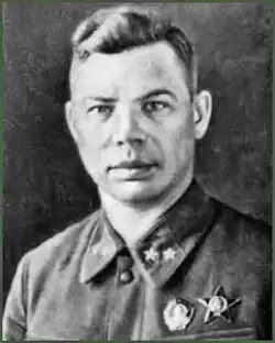 - командир 249-й стрелковой дивизии (с начала июля 1941 года формировалась в Московском ВО, г. Загорск), участвовал в боях с 18 июля 1941 года на Северо-Западном и Калининском фронтах)