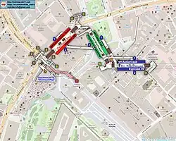 - ↑ В статье указаны только те достопримечательности, которые перечислены на информационных щитах станции