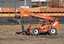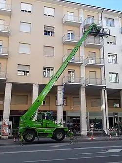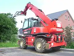 Телескопический погрузчик, также называемый погрузчиком, телескопическим погрузчиком, телепортером, ричтраком или масштабирующей стрелой, представляет собой машину, широко используемую в сельском хозяйстве и промышленности. Он чем-то похож на вилочный погрузчик, но имеет стрелу (телескопический цилиндр), что делает его скорее краном, чем вилочным погрузчиком, с повышенной универсальностью за счет одной телескопической стрелы, которая может выдвигаться вперед и вверх от автомобиля. Стрела может быть оснащена различным навесным оборудованием, например ковшом, вилами для поддонов, захватом для навоза или лебедкой .