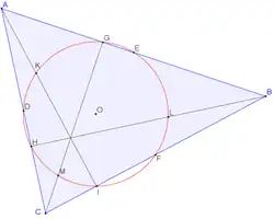 - Радиусы описанных окружностей трёх треугольников Гамильтона имеют три центра JA, JB и JC. Эти три центра образуют вершины треугольника Джонсона ΔJAJBJC , который равен исходному треугольнику Δ ABC и имеет попарно параллельные с ним стороны (Теорема Джонсона, см. рисунок).