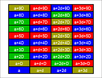 - , то есть основной цвет (всех элементов кроме последнего) у каждой прогрессии свой.