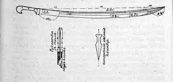 Погиб клинка на 39,7 см длины имеет 3,3 см от верхней прямой α, соединяющей точку поверхности обуха у посада рукоятки и конец шашки[10].