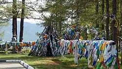 С давних времен по традиции путники останавливаются на перевале проводят обряд подношения (бросали в четыре разные стороны-на юг, восток, запад и север «дээжи», самую лакомую часть принесенной еды (дорожного сухого пайка) или брызгали молоко или чай с молоком, поклоняясь духам, природе, восходящему солнцу с благопожеланиями о счастливой дороги. Затем подвязывали «чалама»(ленточки) специально сооруженному месту (деревья украшенные разноцветными лентами или кадаками…)