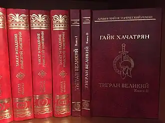 - ↑ Айк Хачатрян. Тигран Великий = Տիգրան Մեծ. — М.: ЮниПресс, 2014. — 288 (К. I) + 320 (К. II) с. — 1500 экз. — ISBN 978-5-91152-029-X.