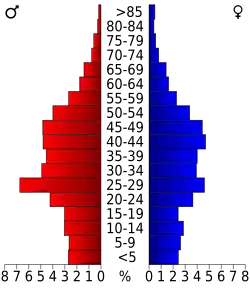 Население округа по возрастному диапазону по данным переписи 2000 года распределилось следующим образом: 19,90 % — жители младше 18 лет, 9,80 % — между 18 и 24 годами, 38,30 % — от 25 до 44 лет, 25,00 % — от 45 до 64 лет и 6,90 % — в возрасте 65 лет и старше. Средний возраст жителей округа составил 35 лет. На каждые 100 женщин в округе приходилось 114,30 мужчин, при этом на каждых сто женщин 18 лет и старше приходилось 115,50 мужчин также старше 18 лет.