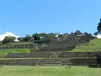 Дворец Подземного мира (Palacio del Inframundo) — находится на восточной стороне первой и второй платформ. На нижней платформе расположен вход в лабиринт дворца. Он представляет собой три проема со ступенчатыми ложными сводами. Верхняя часть сооружения, в настоящее время представляет приподнятый над уровнем второй платформы фундамент, с остатками колонн и восточной стены. Во дворе здания сохранился высохший колодец.