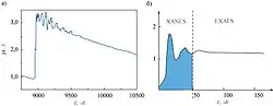 В современном понимании название XAFS объединяет обозначения нескольких участков спектра поглощения рентгеновского излучения вблизи скачка поглощения, вызванного фотоэффектом: область XANES, иногда называемую NEXAFS (англ. near edge X-ray absorption fine structure — околопороговая тонкая структура рентгеновского спектра поглощения), ограниченную энергетическим интервалом ±(30–50) эВ относительно энергии порога возбуждения (скачка), и область EXAFS (англ. extended X-ray absorption fine structure — протяжённая тонкая структура рентгеновского спектра поглощения), расположенную выше скачка поглощения и простирающуюся в интервале приблизительно от 30 эВ до 1500–2000 эВ относительно порога возбуждения. Условное деление спектра на эти области вызвано необходимостью использования разных физических приближений для их описания.