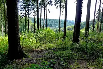 С высокого водораздела Начинается спуск в долину Вуппера. Сначала это просёлочная дорога Флокертсхольцервег. Мимо хутора Цвергерланд и пруда она входит в лесной горный район, который орошает ручей Флокертсхольцербах. По указателю следует поворот направо и начинается собственно тропа Клинка. Она огибает небольшой источник и ручей Фухскулербах и после непродолжительного спуска приводит к Вупперу и ручью Унтерхольцербах, через который перекинут мостик. Далее тропа крутым затяжным подъёмом уходит вверх до отместки около 210 метров, где на развилке оборудовано место для отдыха.