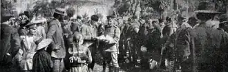В статье «Первые впечатления», опубликованной в «Киевской мысли» 3 октября, Троцкий выражал и свою эмоциональную оценку мобилизации — ощущение того «бессилия перед историческим фатумом… и боль за эту человеческую саранчу, которую везут на истребление»[25][30][31]. Кроме того революционер обращал внимание на пограничный контроль, пытавшийся препятствовать гражданам Австро-Венгрии участвовать в конфликте на стороне сербской армии[32].