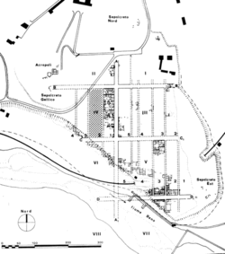 При закладке города этруски соблюдали ритуалы, подобные римским. Выбиралось идеальное место, выкапывалась яма, в которую бросали жертвоприношения. От этого места основатель города плугом, запряжённым коровой и быком, проводил борозду, определявшую положение городских стен. Там, где это было возможно, этруски использовали решетчатую планировку улиц, ориентируя их по сторонам света.