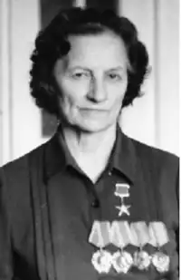 Указом Президиума Верховного Совета СССР от 26 апреля 1971 года «за выдающиеся успехи, достигнутые в развитии мясной и молочной промышленности» удостоена звания Героя Социалистического Труда с вручением ордена Ленина и золотой медали Серп и Молот[1].