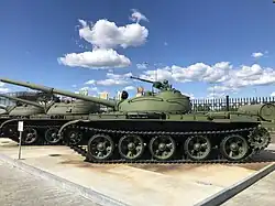 Принят на вооружение Советской Армии ВС СССР в 1961 году. Создан на базе танка Т-55. Производился в СССР с 1962 года по 1975 год. Первый в мире серийный танк с гладкоствольным[3] орудием, и массой среднего танка при высоком уровне бронирования.