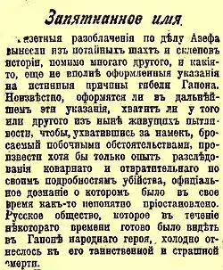 - ↑ М.-ий. Ещё о Гапоне // Биржевые ведомости. — СПб., 1906. — № 9286 (12 мая). — С. 3.
