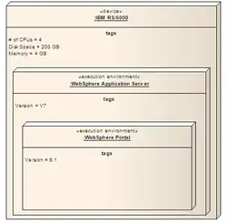 Узлы могут быть представлены как типами данных, так и экземплярами этих типов[1]. Узлы могут иметь стереотипы[3]. Так как физические объекты системы могут обладать большим количеством разнообразных свойств (надёжность, вычислительная мощность, пропускная способность и др.), то язык UML не определяет специализированный синтаксис для обозначения каждого из них, а их моделирование осуществляется с помощью теговых значений и стереотипов[4].