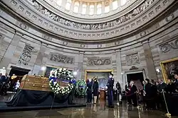 28 февраля и 1 марта 2018 года Грэм стал четвёртым частным лицом в истории Соединенных Штатов, почтённым в ротонде Капитолия Соединенных Штатов в Вашингтоне, округ Колумбия[90][91]. Он первый религиозный лидер, удостоенный такой чести. На церемонии воздания почестей лидер сенаторского Митч МакКоннелл и спикер палаты представителей Пол Райан назвали Грэма „пастором Америки“. Президент Дональд Трамп сказал, что Грэм был „послом Христа“[92]. Также почтение Грэму выразил телеевангелист Джим Баккер, заявив, что он был величайшим проповедником со времен Иисуса. Он также рассказал, что Грэм навещал его в тюрьме[93][94].