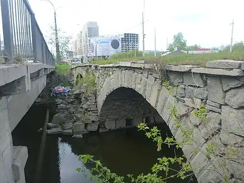 Уктусский мост — народное название, официально объект числится как Мост через реку Патрушиху. Строительство моста началось осенью 1856 года, когда была спущена вода из заводского пруда Уктусского завода, на месте бывшего деревянного моста, соединяющего Уктус с центром города Екатеринбург по Челябинского тракту. Чертёж и смету подготовил екатеринбургский архитектор Андрей Спиринг, спроектировавший в 1845 году каменную набережную Городского пруда со стороны Дома главного горного начальника (ныне Областная больница № 2). Мост был построен 28 июня 1857 года[2].