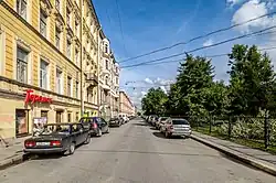 - Дом № 31 — бывшее училище святой Елены, арх. А. И. Шамбахер, 1898—1901, эклектика[17]. Также в здании училища находилась домовая церковь равноапостольных Константина и Елены, открытая в 1901 году. В 1918 году церковь была закрыта, а её имущество — передано в Князь-Владимирский собор. В настоящее время в здании расположена средняя школа № 77 с углублённым изучением химии, в помещении бывшей церкви находится школьный актовый зал[18].