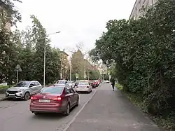 Первоначальное название Карловская улица (от улицы Ольминского до улицы Ткачей) известно с 1901 года, происходит от имени домовладельца фабриканта Карла Яновича Паля. С 1914 по 1950-е годы включала участок южнее улицы Ткачей. В 1957 году продлена до Большого Смоленского проспекта[2].