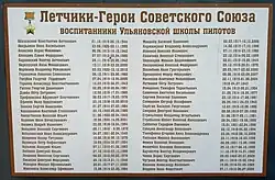 9. Список «Лётчики — Герои Советского Союза, воспитанники Ульяновской школы пилотов» взят со стелы, установленный в 2015 году, на памятнике «Выпускникам школы» (бульвар Западный, Ульяновск).