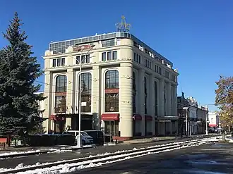 Здание построено в 1938 году по проекту архитектора Л. М. Наппельбаума[3]. До постройки современного здание на этом месте располагался небольшой одноэтажный дом[4]. В советское время в здании располагался Универмаг «Детский мир».