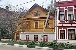 Подвал дома сложен из кирпича, два основных этажа — из брёвен, обшитых калёванным тёсом. В плане здание квадратное, завершено вальмовой крышей, усложнено со стороны двора выступом чёрной лестницы и сеней. Обогащено двумя эркерами на флангах главного фасада, правый эркер значительно шире левого. Эркеры завершены треугольными фронтонами, поддерживаются кронштейнами, которые опираются на филенчатые лопатки. Такими же лопатками акцентированы фланги эркеров[4].