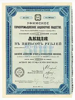 Уфимское горнопромышленное акционерное общество — одно из первых акционерных обществ на территории современного Башкортостана, чей основной капитал в начале XX в. составлял свыше миллиона руб.[1]