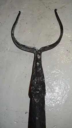 Ухва́т, рога́ч — ручной инструмент для перемещения глиняных и чугунных горшков для еды, установки их в топку русской печи. Представляет собой металлическую рогатку, закреплённую на длинном черенке. Под каждый размер чугунка был свой ухват. Для перемещения самых больших и тяжёлых чугунков ухваты снабжались опорной скобой с двумя деревянными колёсиками на концах[1], или просто использовался деревянный валик, который подкладывался под ухват.