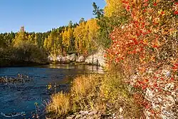 Цветение пиона уклоняющегося на берегу реки УхтыЛыаёльский геологический памятник, расположен в среднем течении реки Лыаёль и в нижнем течении реки Седью — левых притоков реки Ижмы. Коренные выходы отложений франского яруса верхнего девона: лыаёльской свиты, представлен известняками доманикового типа, битуминознымимергелями. Уникальное совместное местонахождение ископаемой фауны глубоководных и нормальных морских условий: аммоноидей, брахиопод, остракод, конодонтов, спор и пыльц.