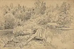В Государственной Третьяковской галерее находится одноимённый рисунок-эскиз картины «У омута» (бумага или картон серый, графитный карандаш, 32 × 48 см, инв. 2651)[46][66]. Другой одноимённый эскиз находится в частном собрании (бумага, акварель, тушь, сепия, 16 × 27 см)[67].