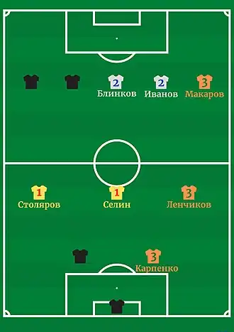 | Алексей Макаров | 2 | 1 | 1 | 1 | 4 | 1 | 3 | 25 | 9 | |||