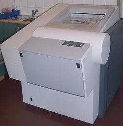- С внешним барабаном. Плёнка закрепляется на внешней поверхности барабана, который вращается. Экспонирование осуществляется матрицей лазерных диодов, которая движется параллельно оси барабана.