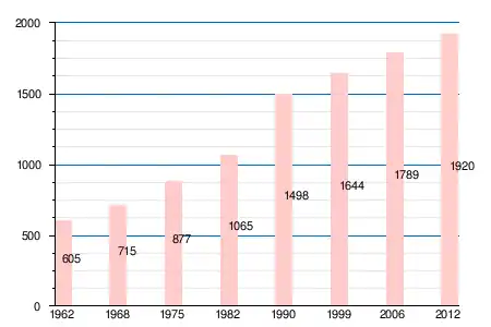 | 1962 | 1968 | 1975 | 1982 | 1990 | 1999 | 2006 | 2011 | 2012 |
