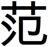 1. 范 (значение «образец, стандарт»), соответствует вьетнамской фамилии Фам (вьет. Phạm, тьы-ном ).
